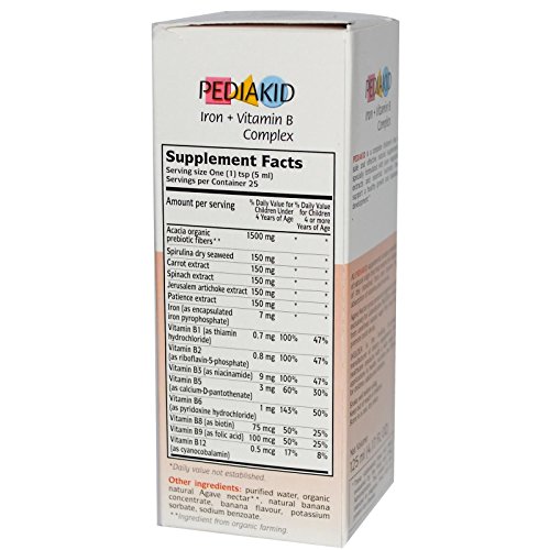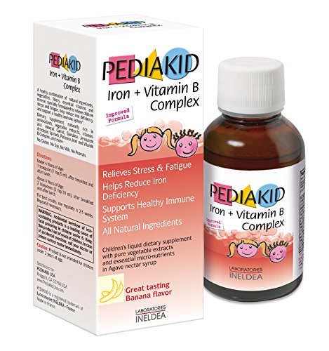 Specially recommended for children and preteens, unique combination of PEDIAKID Iron + Vitamin B Complex (B1 to B12) contribute all natural active ingredients in Iron, Vitamins B Complex to help children fight against constant fatigue and body stress and tiredness.PEDIAKID Iron + Vitamin B Complex also supports a strong body immune defense against the rigors of seasonal changes, and helps reduce Iron deficiency in most children.