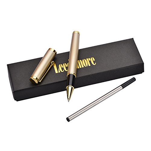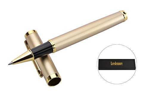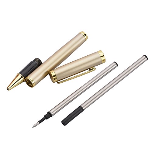 -. Title : Gold Trim Ballpoint Pen, Metal Pen Tip with Black Ink, Smooth and Easy Writing for Signature Calligraphy Executive Business, Extra 1 black ink refill in Gift Box
