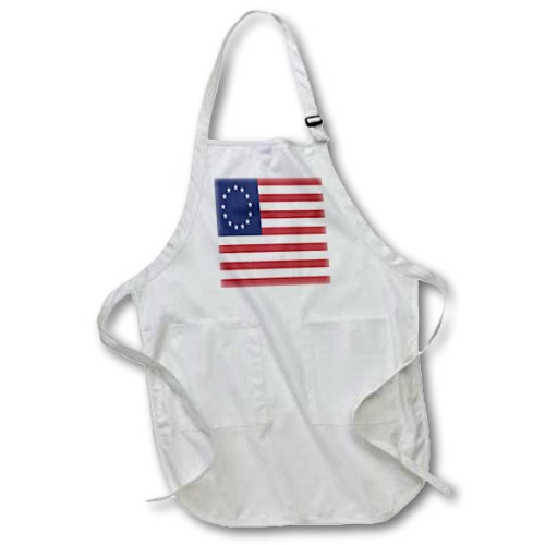 3dRose apr_50163_4 13 Colonies Betsy Ross Flag-Full Length Black Apron with Pockets, 22 by 30-Inch