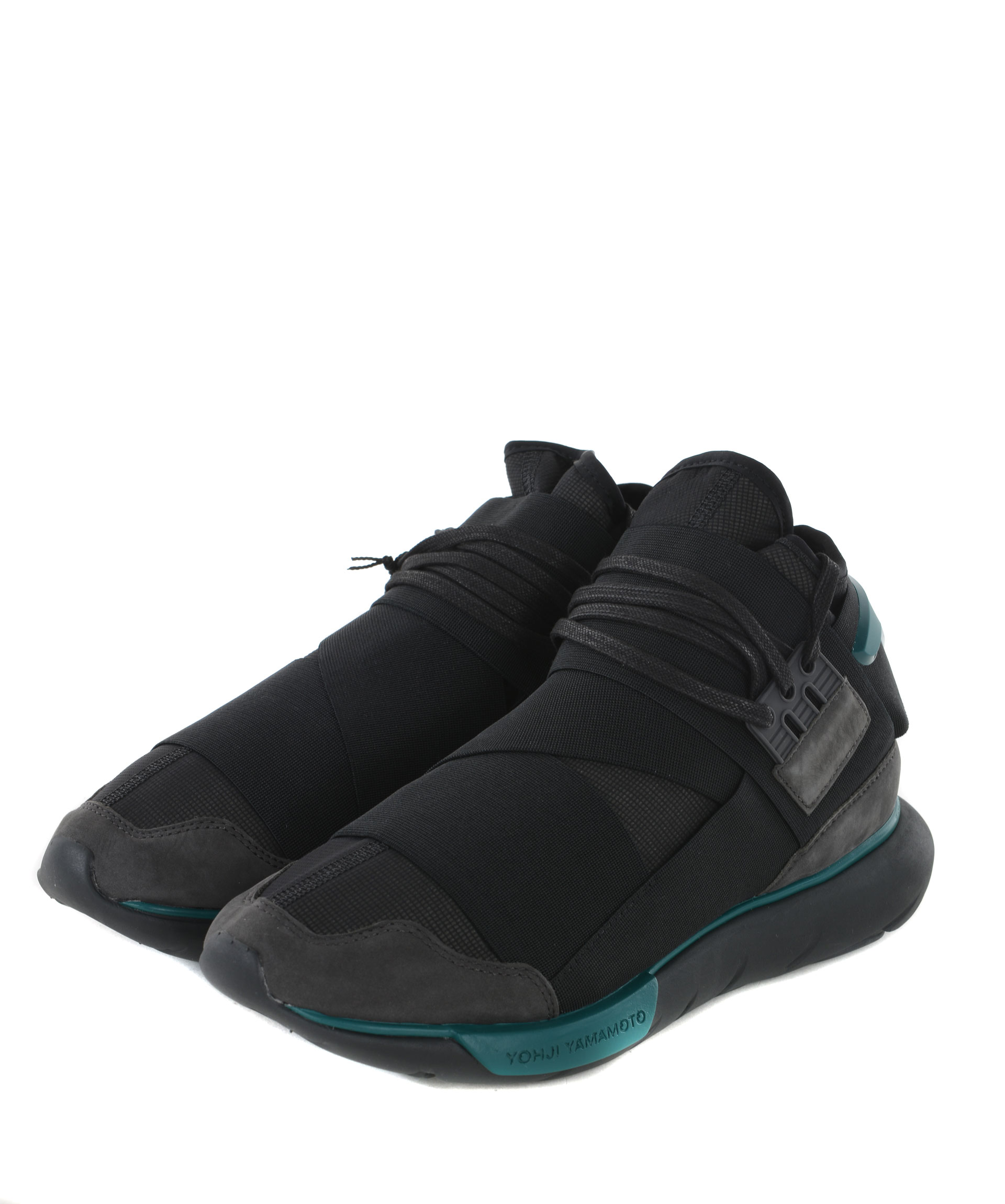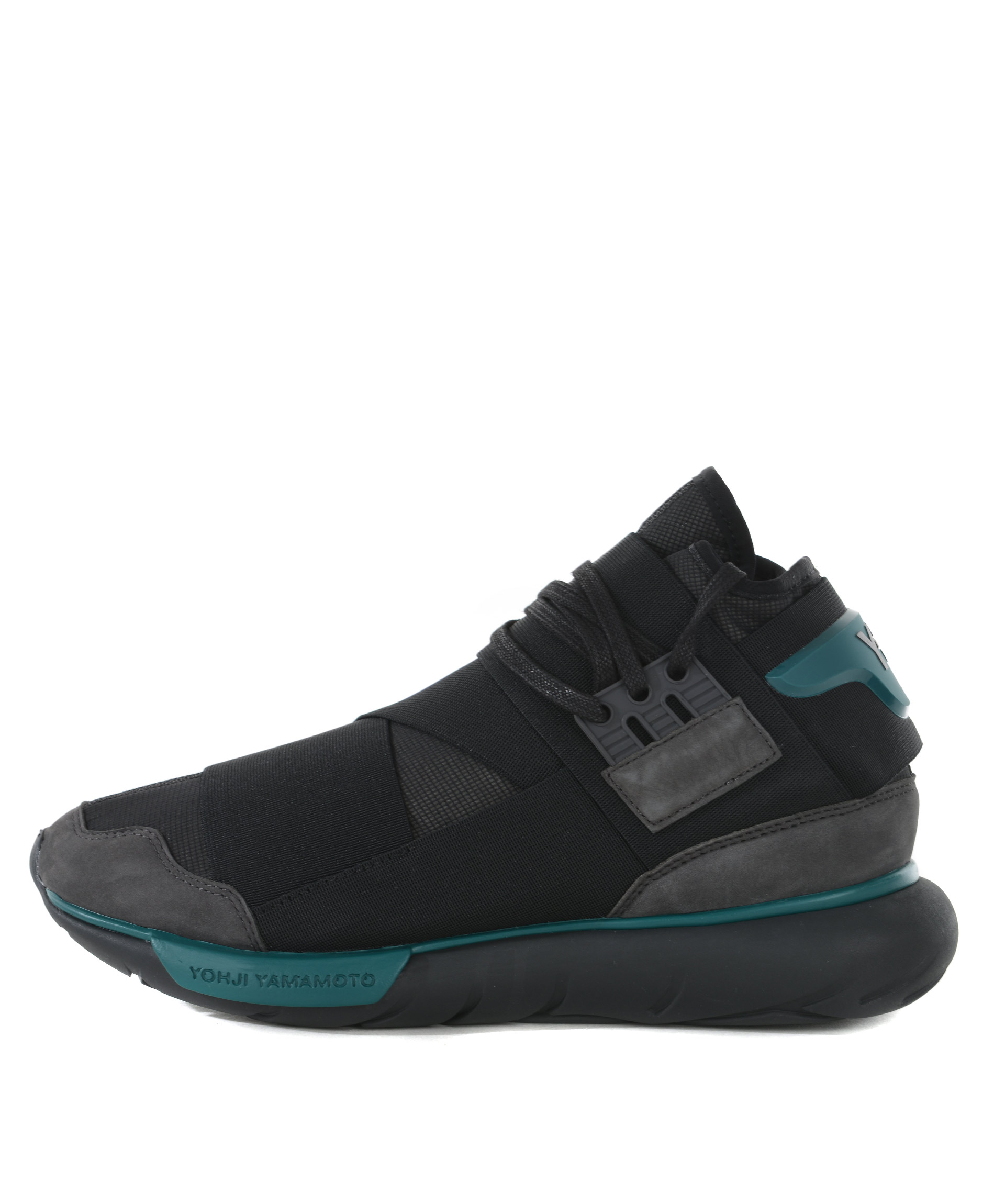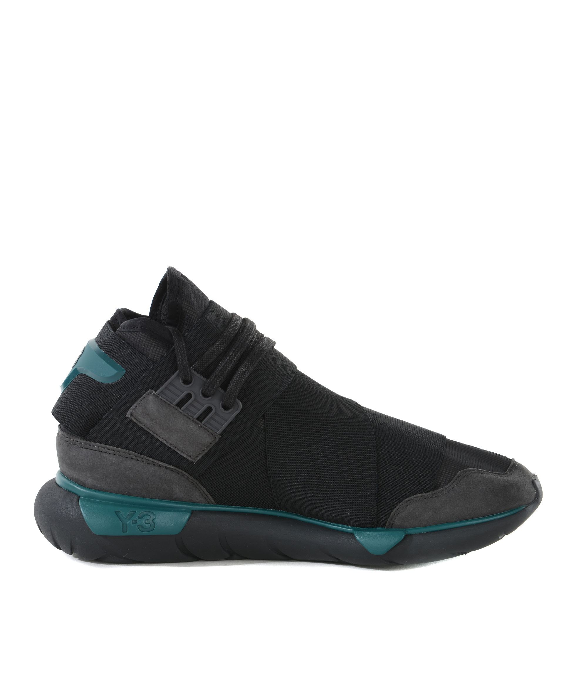 Sneakers Y-3 in nylon e nabuk Nero/Grigio scuro. Fasce elastiche sovrapposte. Stringhe cerate. Inserti in gomma a contrasto. Logo in gomma sul retro. Suola in gomma tubolare logata. Soletta interna ammortizzata. Misura in foto 7