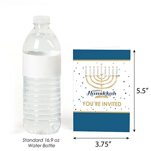 Happy Hanukkah invitations SIZE 5.5 inches by 3.75 inches, folded. The included envelopes measure 5.75 inches by 3.75 inches.