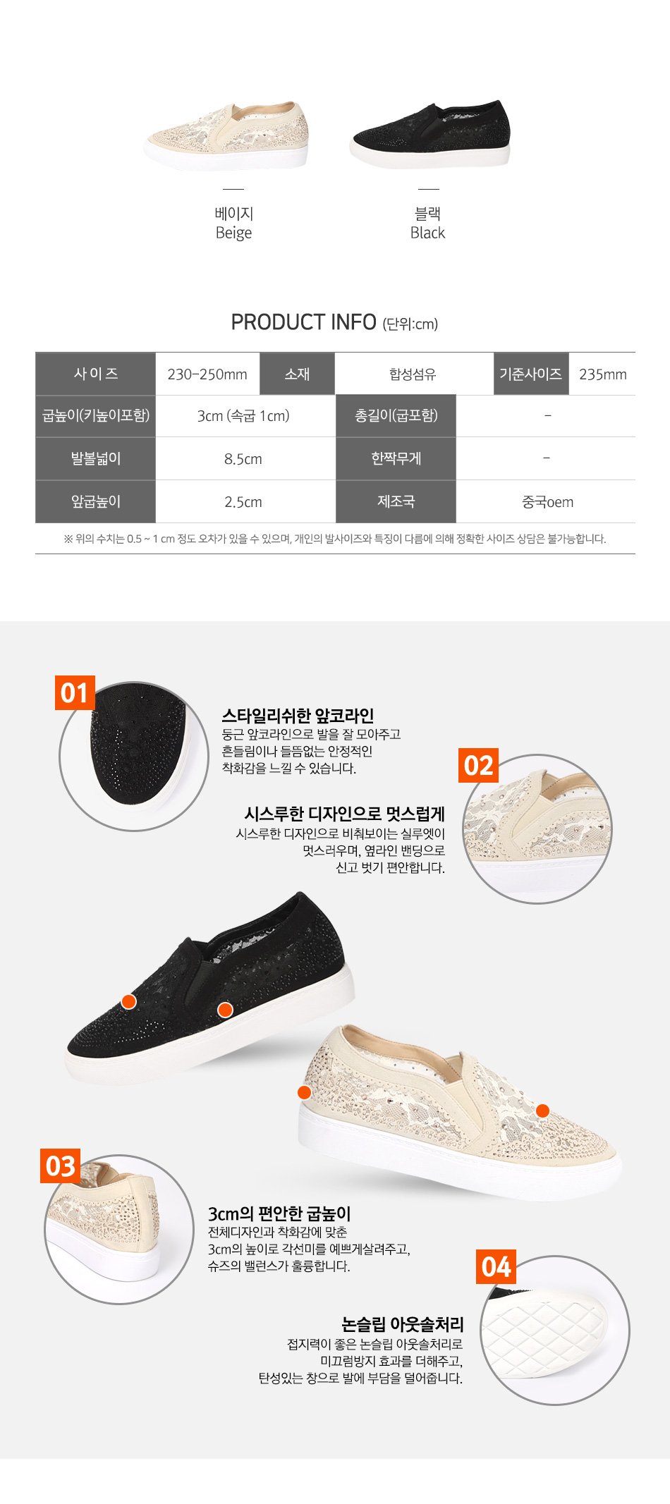 적당한 3cm의 굽으로 발에 무리없이 오랜 기간