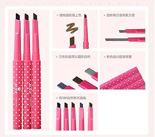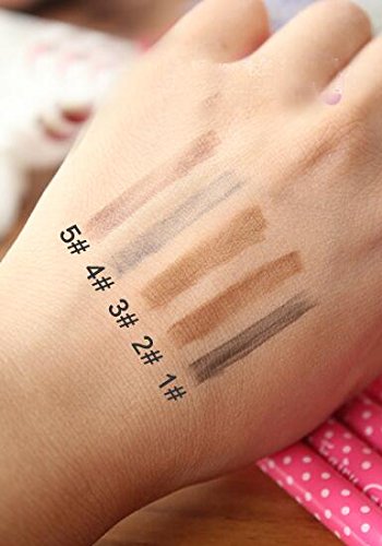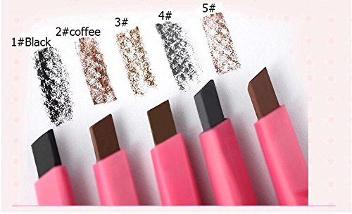 -. Feature : Every girl needs a good eyebrow pencil. (1#Black , 2# Coffee, 3#Light Coffee, 4#Gray, 5#Dark Coffee )Package include :1pc / Brush gently rounded lines, soft hard moderate cartridge, allows you to outline the natural eyebrow / Rotary modelling is easy to use, can be finished in ink.A special formula durable not easy to fall off, good waterproof effect / Use tips eyebrow pencil, black hair nature, by using gray or black pencil with brown is soft, and dyed red, purple, wine red, yellow and so on hair color eyebrow pencil for brown or light brown, the effect is more harmonious. / Along the eyebrows should be paid attention to when painted eyebrows grow in the direction of the one described in vacant place, natural and comely, with eyebrow brush from brow to eyebrow end finally swept gently a few times.