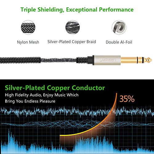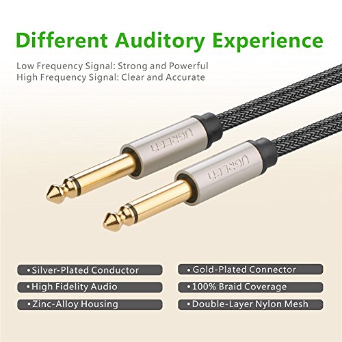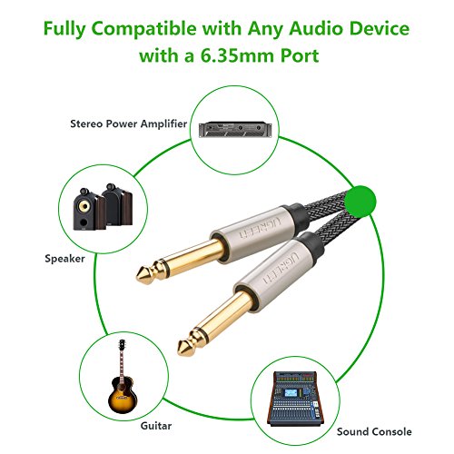 UGREEN Gold Plated Premium 6.35mm Mono Jack 1/4" TS Cable Unbalanced Guitar Patch Cords/Instrument Cable Male to Male with Zinc Alloy Housing and Nylon braid (6ft)