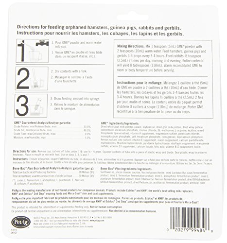 Recommended as a complete food source for orphaned or rejected small animals or those nursing, but needing supplemental feeding.