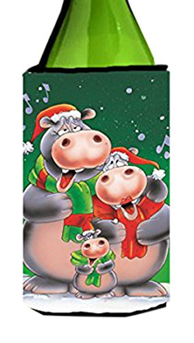 Caroline's Treasures Hippo Family Caroling Wine Bottle Koozie Hugger, 750ml, Multicolor