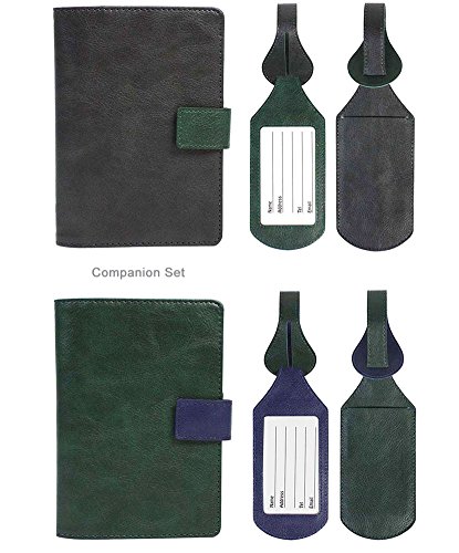 -. Title : His & Hers Synthetic RFID Blocking Passport Case with Pen Holder and 2 Matching Luggage Tags (Grey/Green Green/Blue)