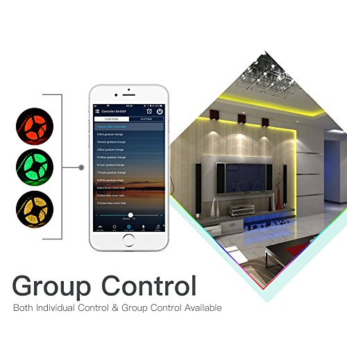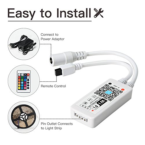 - Wifi Wireless Smart Controller: Download APP, you can easily change/DIY the led light strip's color, brightness, color temperature, change mode, change speed, support the microphone, music and timer mode. By using 1 APP, you can set groups to control many wifi led light strips at the same time. 24 key remote control(included) can be used if your phone is not spare.