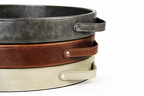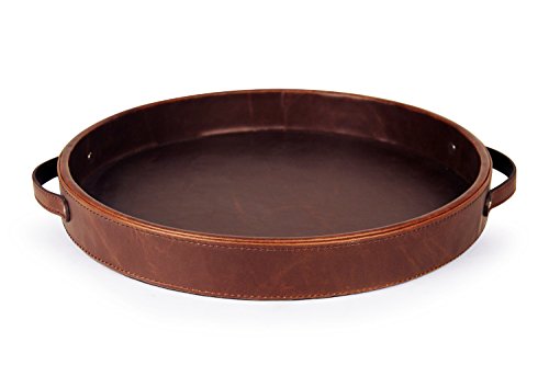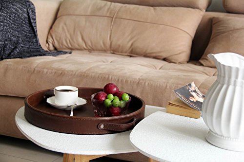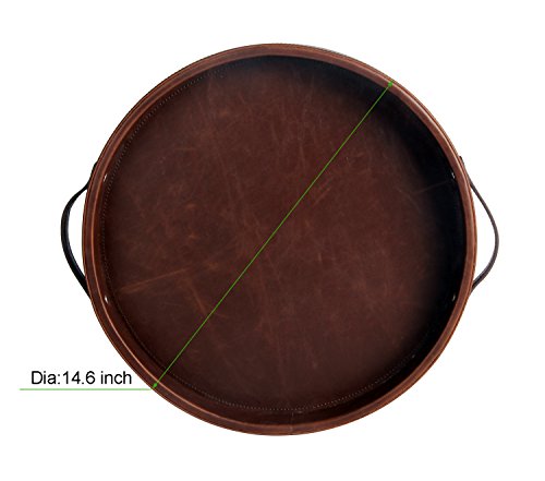 Ms.Box PU Leather Round Serving Tray with Handles, Brown