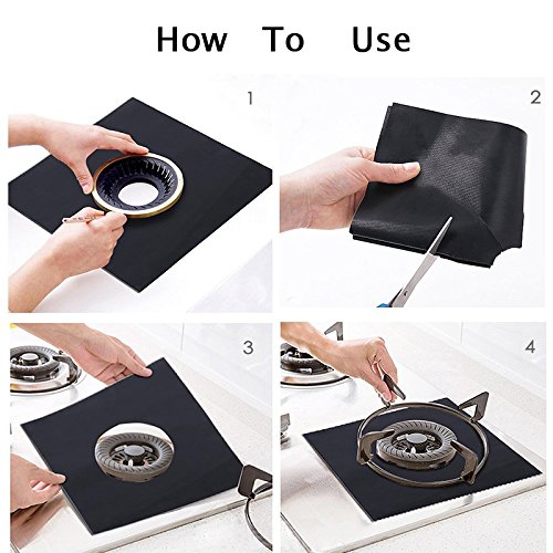 Gas Range Protectors,Non-Stick Reusable Stove Burner Covers -0.01" Thin 10.6” x 10.6” Black Dishwasher Safe Stovetop Kitchen Accessories Fit Gas Stove Burner Liners IMPROVED 2017 (4-Pack)