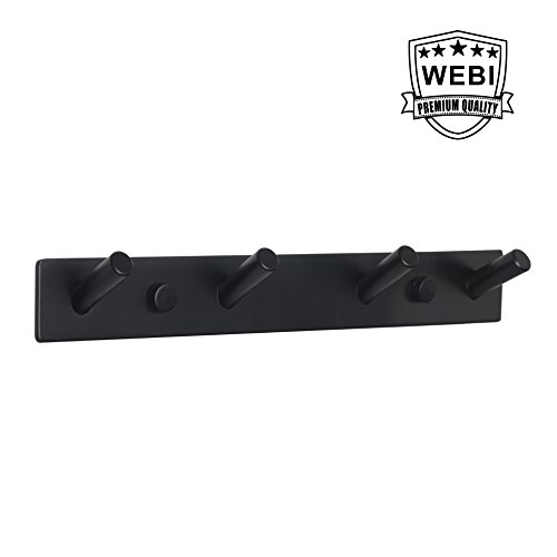 Coat Hook WEBI Black Iron Hanger Rack for Dog Pet Leash, Hats, Keys, Bath Towels, Robe, Clothes with 4 Hooks,Wall Mount Closet Clothing Bathroom Garage Home Organization Storage, Decorative Gift