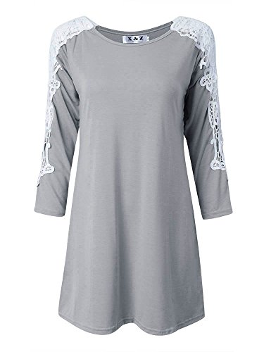 Feature : Women Lace Crochet Hollow Out Splicing Long Sleeve Mini Dress (Random) / If you want to choose, please contact us after ordering. If not, we will random. / (Random)Color Gray L, Gray M, Gray S, Gray XL, Khaki L, Khaki M, Khaki S, Khaki XL