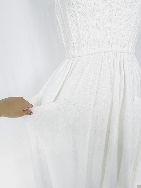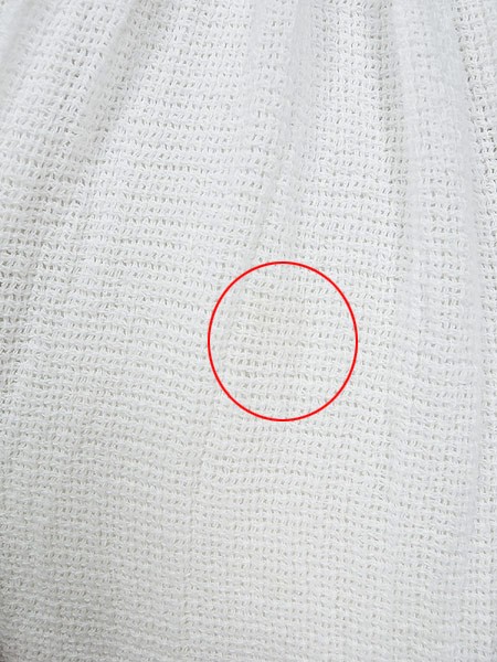 Ladies ブランド- カラー白 メール便不可 コンディション★★★ 素材記載なし 表記サイズM スタッフコメント裏地なし、透け感があります。左ポケット上付近にシミあり。 実寸サイズ 着丈 110 cm 身幅 43 cm 肩幅 37 cm ウエスト 70cm 〜 96cm (27.5インチ〜38インチ) ※ウエスト・ヒップ以外は平置き採寸