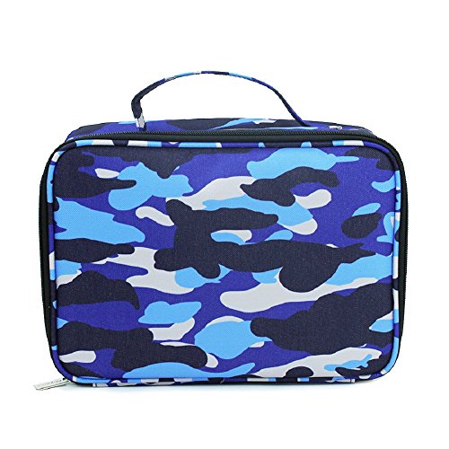 Camouflage Blue Grey 10.5 x 17 Inch Polyester Insulated Lunch Box Tote
