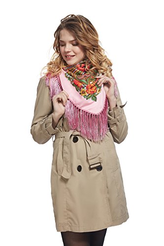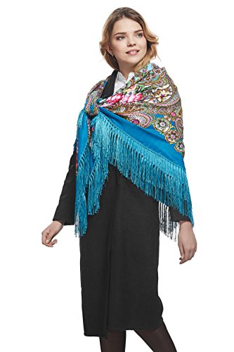 Binding : Apparel Product Description This fine wrap echoes famous Russian, Ukrainian and Polish floral shawls and especially Pavlovsky Posad scarves that are widely known as classic symbols of Russian handicraft and finest elegance. Back in the 18th century Russian shawls served both as a fashion women's accessory and as a decoration for interiors. Now embroidered scarfs represent a stunning mix of old traditions and modern style. Highlights ? The oversized square scarf with vibrant floral ornaments and long silk tassels all over the perimeter. ? The shawl features themes found in nature. ? The ethnic shawl can be worn around the neck, across the shoulders and over the head as a classic Russian head wrap (platok). ? This multifunctional scarf will add a touch of bohemian elegance to your look and keep you warm during chilly days. Materials and care tips ? The closely woven cotton blend fabric boasts the lustre look and soft feel of silk. Durable material with no stretch has excellet drape. It's hypoallergenic and won't irritate your skin. ? To save the vibrant colors of the wrap hand wash it in cold water using mild detergent. ? The shawl is wrinkle resistant, so it doesn't need everyday ironing. Warranty We are sure about high quality of our products. That's why we offer 30 day money back guarantee on all scarfs. If you don't like the shawl for any reason, return it within 30 days and get a full refund. 0