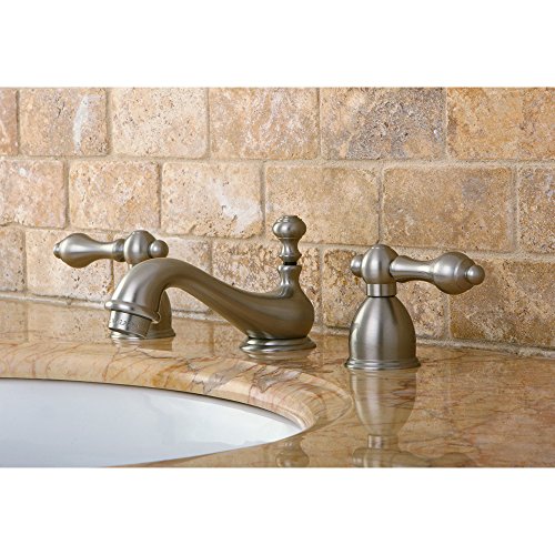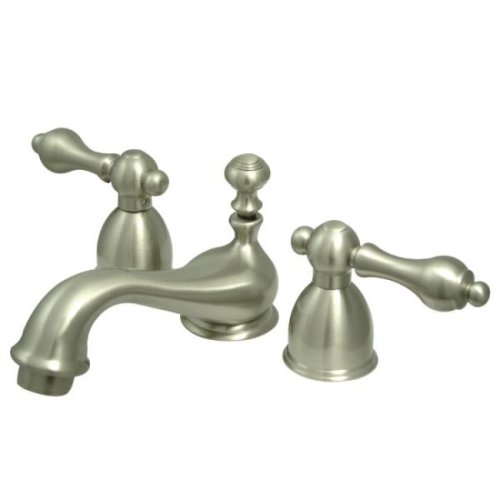 Kingston Brass KS3958AL Restoration Mini Widespread Lavatory Faucet with Metal lever handle, Satin Nickel