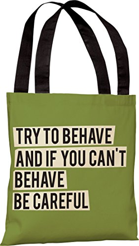 One Bella Casa Try to Behave Tote Bag by OBC, 18"x 18", Green/Ivory