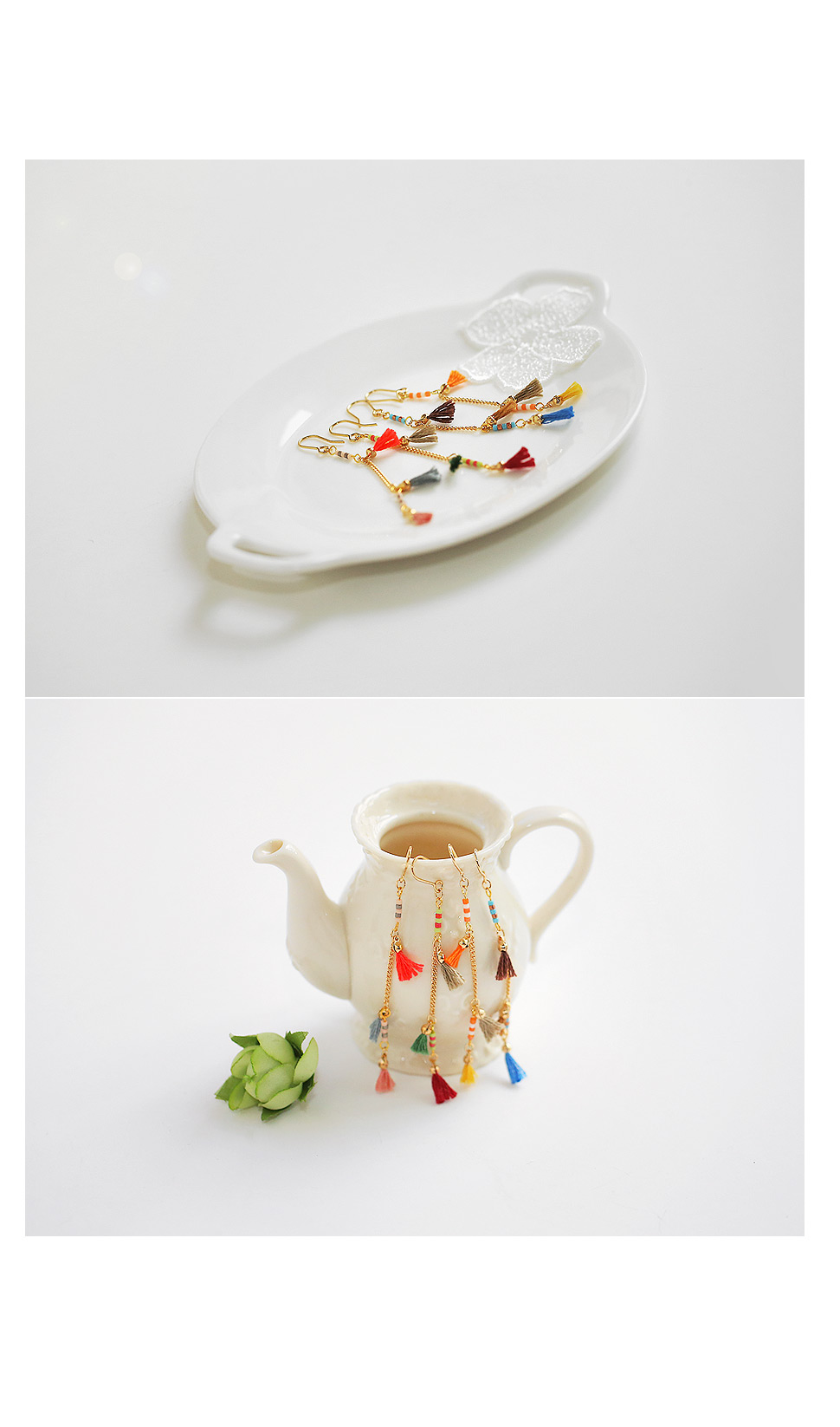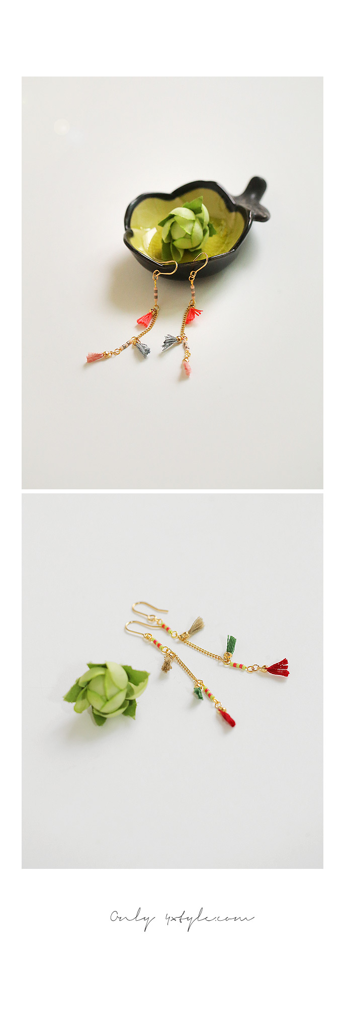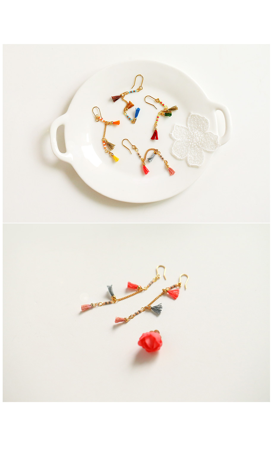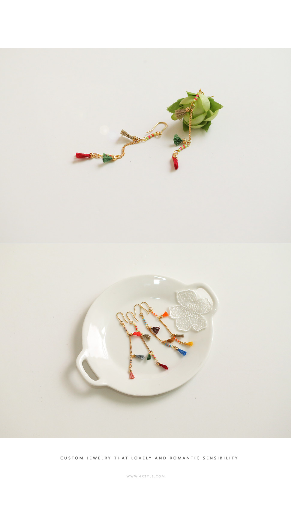 색색별로 전부 소장하고 싶어지는 스위트 태슬 귀걸이 에요.