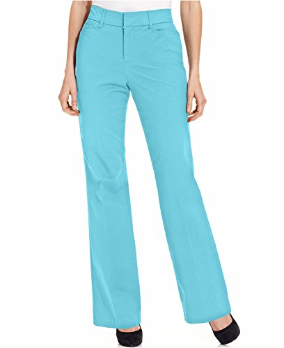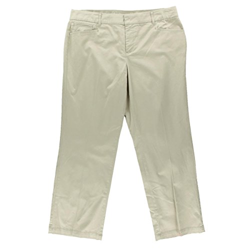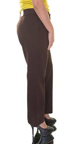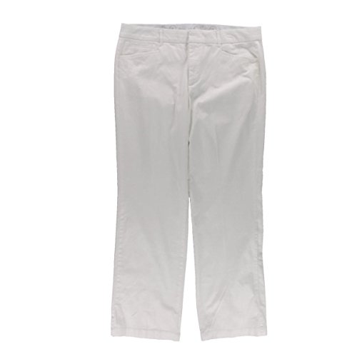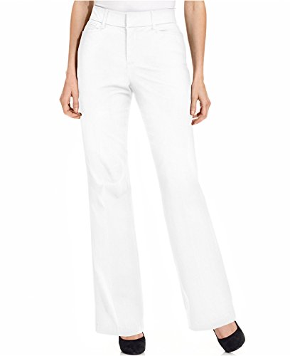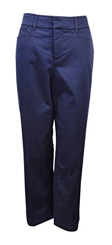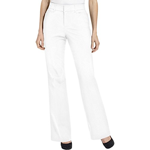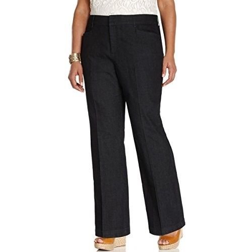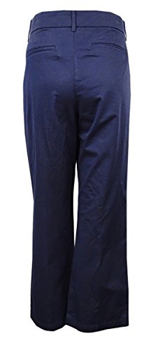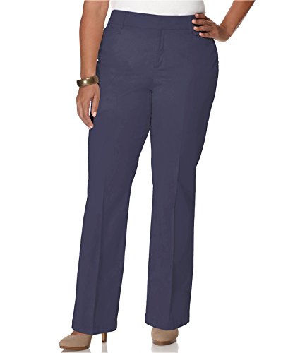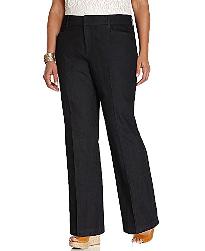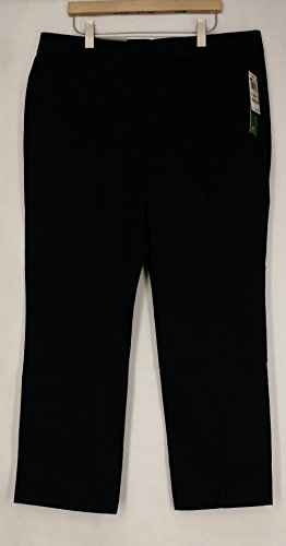 Product Description Pants features no lining, front pockets, faux back pockets, no gap waist, comfort elastic, tummy slimming panels, straight leg, cotton blend fabric, and zip fly button closure. Inseam: 31.5" (size 6), 14W Inseam: 31". 0