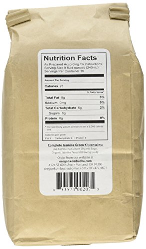 -. Binding : Misc. -. Brand : Oregon Kombucha -. EAN : 0853574002075 -. Feature : All ingredients you need to make great tasting Kombucha / Jasmine Green Tea makes a light and fragrant Kombucha / Each kit makes one gallon of kombucha, and includes a complete brewing guide. / The Starter Kit includes organic tea, organic sugar and live culture. -. IsAdultProduct : 0 -. Label : Oregon Kombucha -. Manufacturer : Oregon Kombucha -. ProductGroup : Grocery -. ProductTypeName : GROCERY -. Publisher : Oregon Kombucha -. Studio : Oregon Kombucha -. Title : Oregon Kombucha Complete Starter Kit - Jasmine Green Tea 16.8 oz -. UPC : 853574002075