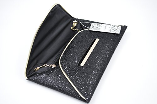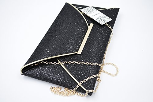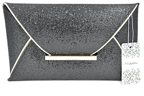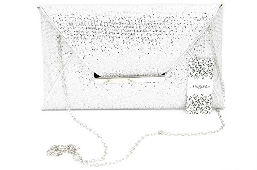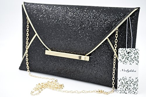 Product Description "Make every getaway a celebration with the Nodykka evening envelope cross body bag clutch. This shimmery and glamorous party shoulder bag with metallic detail matches perfectly with your dress for dinner or brunch and bride's outfits. It fits easily your sunglasses, phone(iphone 7 plus), lipstick, comb, tissues or small cosmetic case. It features also one zipper slip pocket that holds your keys,id or credit cards or some cashes. Detail Color: Black/Silver/Coffee/Champagne Carrying Option: Detachable metal chain shoulder strap Occasion: Wedding/Cocktail Party/Evening/Prom/Graduation/Gifts fo beloved/For birthday or Christmas present Please note, the hardware color and interior lining may differ from the color shown in the photo. This item may ship with an attached brand tag. Merchandise returned without the original packaging, tag attached or a damaged tag may not qualify for a refund." 0