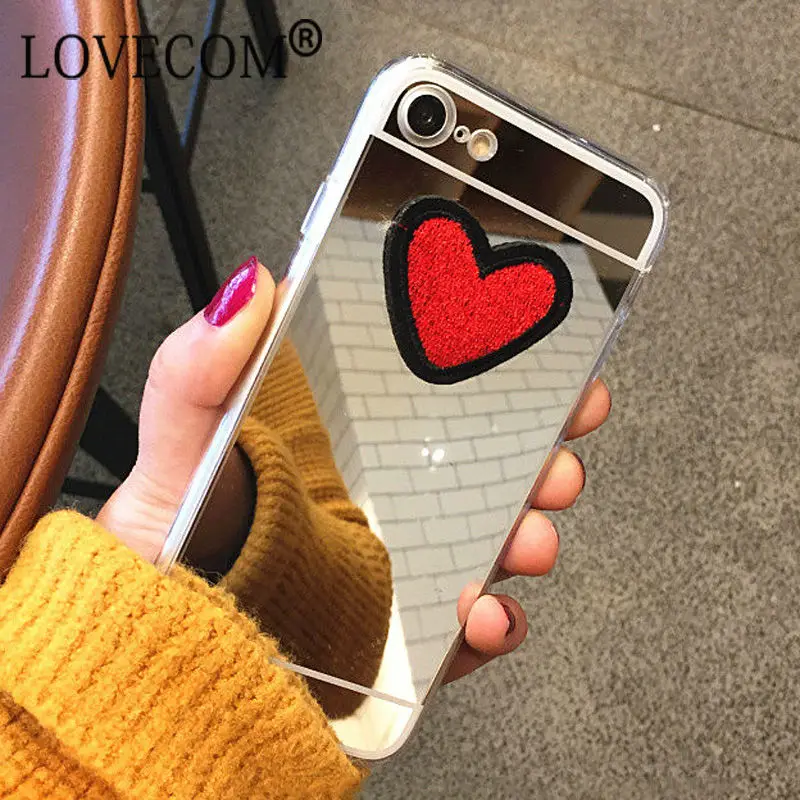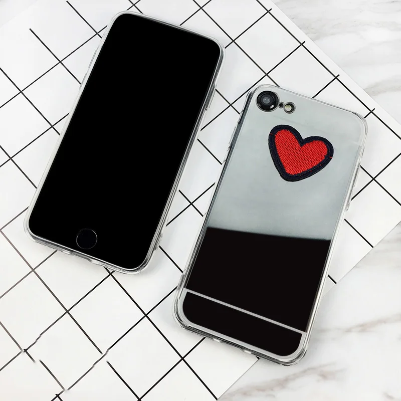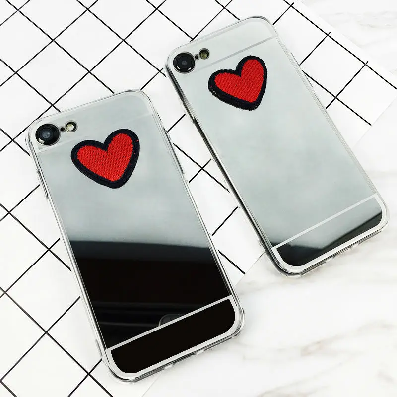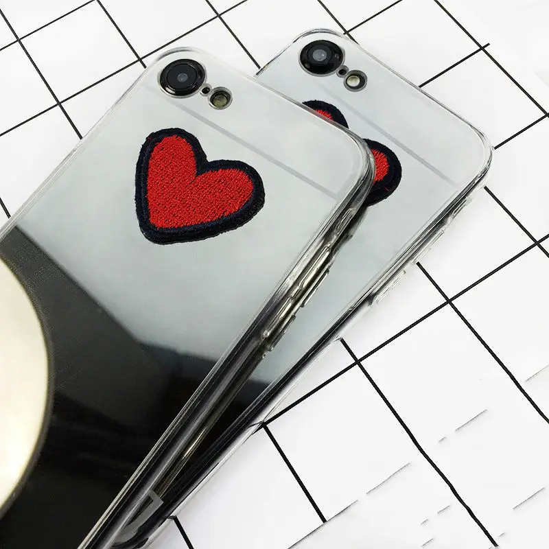 Feature:DIY Stitches Love Heart Silver Mirror Soft TPU Phone Back Cover