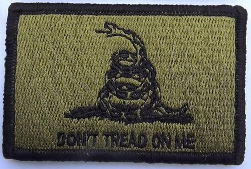 -. Title : Gadsden Don't Tread On Me Tactical Patch - Olive Drab 3"x2" Hook and Loop backing