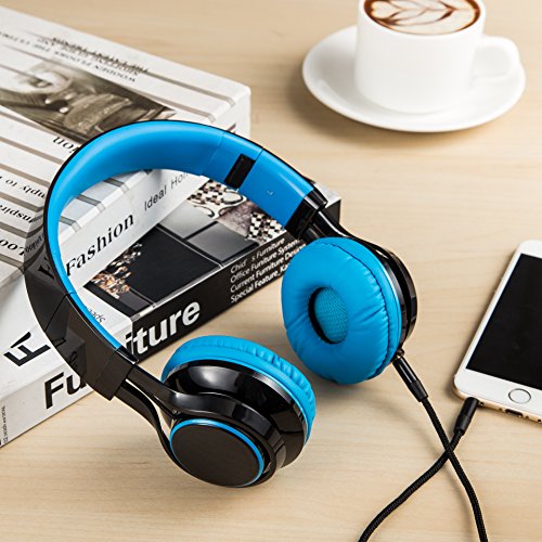 Sound Intone HD30 Stereo Lightweight Folding Headsets with Stretchable Headband for iPhone, All Android Smartphones, PC, Laptop, Mp3/mp4, Tablet Headphone (Blue)