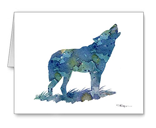 -. Feature : "Blue Wolf" artwork by watercolor artist DJ Rogers. / Note card size is 4.25 x 5.5 inches / Matching white envelopes included. / Note cards are blank inside for your personal message. / Suitable for framing.