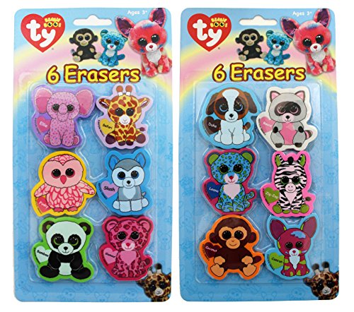 Ty Beanie Boos Die Cut Character Erasers, 2 x 2 Inches Each, Pack of 6, Assortment Will Vary (816-3)