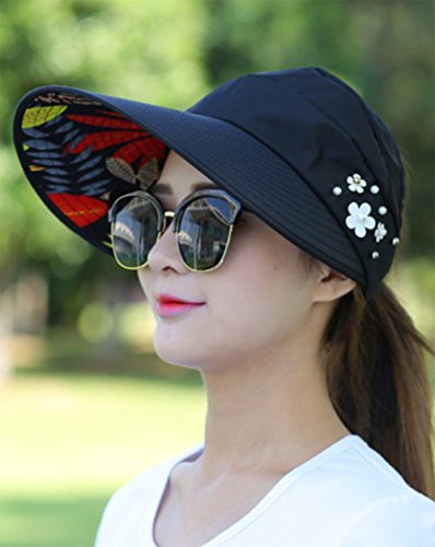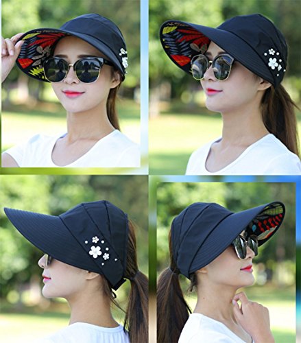| (Ruikey)/Accessories/Hats/DIRECT FROM USA/Ruikey Sun Cap Ladies Foldable Beach Hat Wide Brim Plain Visor Hat Summer UV Sun protection Tra... |
