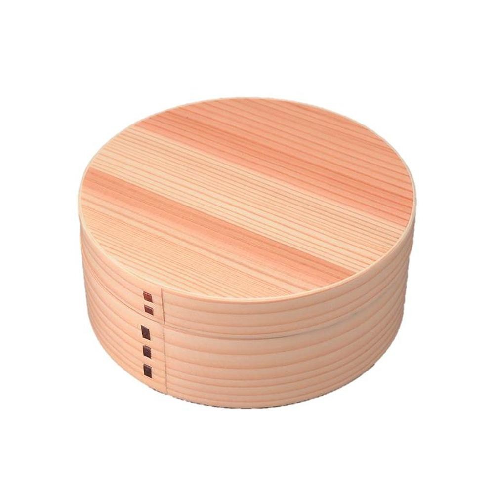 | 職人の手づくりにこだわった、昔なつかしい曲げわっぱ弁当箱です。ご飯を入れると木が余分な水分を吸収し、風味を損なわずにいただけるという昔の人の知恵が生きています。 |