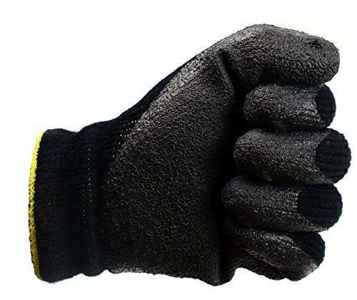 BEST1 WHVBK-M Winter Insulated Rubber Latex Coated Work Gloves, Crinkle Pattern, 3 Pairs/ Pack (Medium, Black)