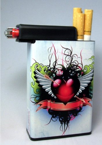 Title : Cigarette Case Heart Wing with Built on Lighter Holder Box Ryo
