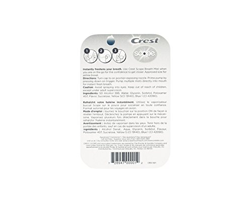 -. Feature : Use Crest Scope Breath Mist when you are on the go for the confidence to get closer / Crest Clean, Scope Freshness / 0.24 ounce Breath Mist, 6 count / Approved for Airline Travel! / Mint flavor
