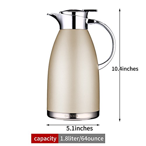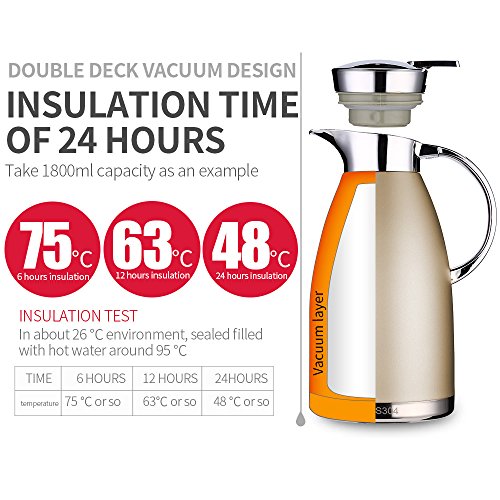 coffee carafe stainless steel 18/10, Thermos suitable for holding cold and hot beverages, keep beverages hotter, colder, fresher and longer for up to 24 hours.