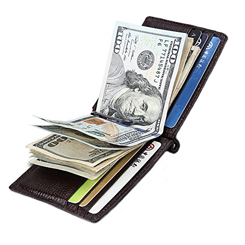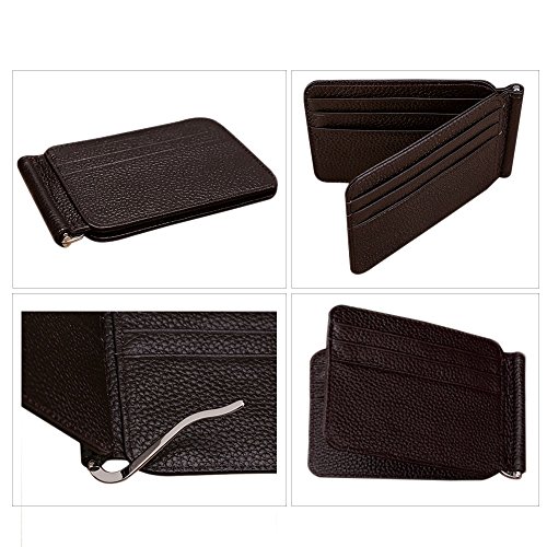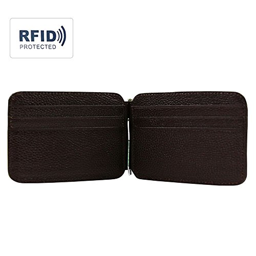 Description: 1. Size: 4.3" x 3.2"x 0.3" 2. Material: first layer cow leather (Lining: polyester) 3. No closure; slim design makes it fit in front or back pocket. 4. With 6 card slots, 1 metal clip; 5. RFID blocking keeps your vital information in cards from being stolen, protects the valuable information stored on RFID chips from unauthorized scans. 6. Hanerdun owns its own trademarks. The serial number:86500143. The package contains Hanerdun tag.