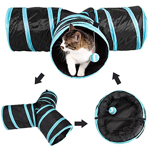 Pet Cat Tunnel, Itery 3 Way Cat Game Play Toy Collapsible Chute Tube with Ball for Kitten Kitty Dog Puppy Rabbit Pet