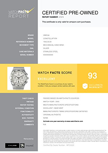 -. Feature : Omega Constellation 1542.30.00 with 7.50 inches band, stainless-steel bezel and silver dial / Authenticated by WatchFacts. Grade Rating: 93 / Condition: Excellent / No papers offered with this watch / Mechanical-hand-wind movement / Watch year: 2000