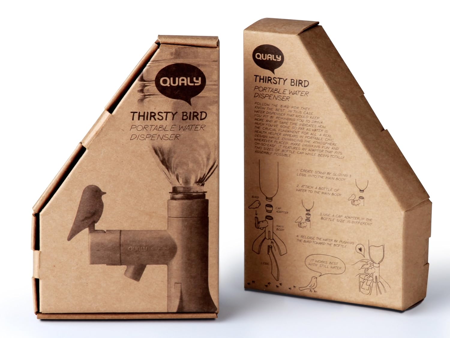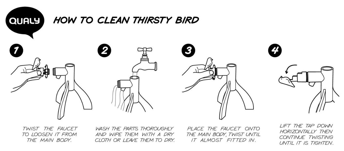 止まり木にとまった鳥を押して注ぐ、ドリンクサーバー。