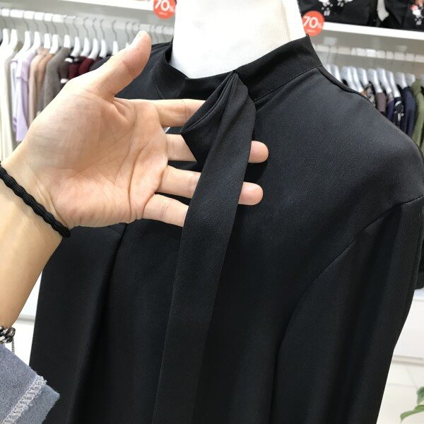 리본 반넥 블라우스입니다넥라인 트임과 리본 포인트로 고급스러우면서 우아한 느낌을 자아내는 블라우스입니다폴리소재로 착용감이 가볍고 관리가쉽답니다사이즈 FREE가슴둘레 51cm총장 67cm