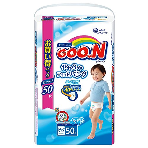 Strong leakage further up the absorption! BIG pants fit size (12 ~ 20kg weight guideline) is a super pale baby diapers pants type which realized the ambition comfortable and soft thick like soft Goon underwear. Adoption of new mortar type absorber with absorption power up. I relaxed fit without leakage West, but also work full plump belly. Reduce the unpleasant smell after using deodorant effect using breathable backsheet, of the ions.