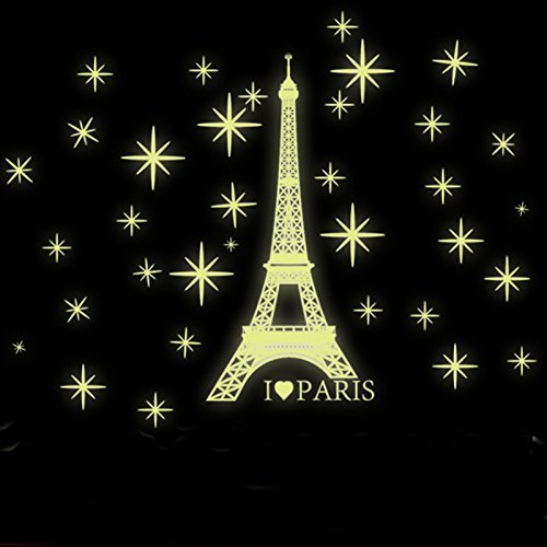 -. Title : Night Lighting Eiffel Tower Vinyl Wall Decal PVC Home Sticker House Paper Painting Decoration Wallpaper Living Room Bedroom Kitchen Art Picture DIY Murals Kids Nursery Baby Decor