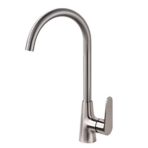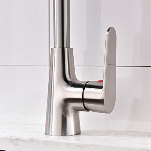 VAPSINT Modern Hot& Cold Mixer Stainless Steel Single Handle Brushed Steel Kitchen Sink Faucet, Easy Installation Brushed Nickel Kitchen Faucet