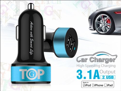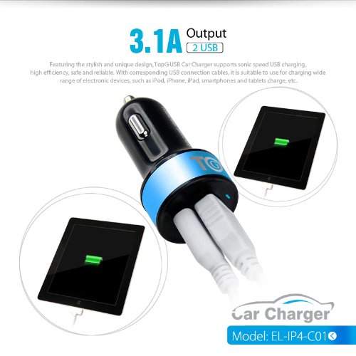 - Title : TopG Apple Certified - Lifetime Warranty - Dual USB Ports 3.1A Portable USB Car Charger for iPhone 5 5S 5C 4 4S,iPad 4 3 2,iPad mini,iPad air Battery Power Supply for All Apple Device (Lightning Cable/Adapter Not Included)- Premium MFI Quality (Black+Ocean Blue)