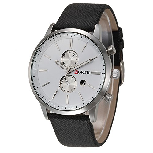 -. Feature : KEY SCRATCH RESISTANT WATCH FACE and PRECISE TIME KEEPING: Imported Quartz Movement, provide precise and accurate time keeping. No more key scratch with the high hardness mineral glass watch face / WATERPROOF FOR DAILY USE: 98 FT waterproof (30 M) - 3ATM. Perfect for all kind of business, casual, indoor activities and daily use. Hand wash, rainning day, sweating, no problem! NOTE: Please DO NOT pull out the button under the water. Too much water contact or usage in extreme Hot or Cold temperature will damage leather band and shorter watch life / SPECIAL SECONDS DIAL, DATE WINDOW with CLASSIC BUSINESS CASUAL DESIGN: Business casual dress code design with elegant dual dial and black roman numeral time mark, fine art plating case, comfortable leather band strap, lead you to classic and business simplicity fashion. This is a perfect business causal dress watch for you, also is a great gift for family and friends / PRECISE TIME KEEPING and KEY SCRATCH RESISTANT WATCH FACE: original Japanese Quartz Movement, provide precise and accurate time keeping. No more key scratch with the high hardness mineral glass watch face / SPECIAL LUG SHAPE DESIGN with COMFORTABLE LEATHER BAND STRAP and DURABLE STAINLESS STEEL CASE COVER: high quality leather watch band strap provide comfortable wearing experience. Stainless steel water proof case cover make it super durable