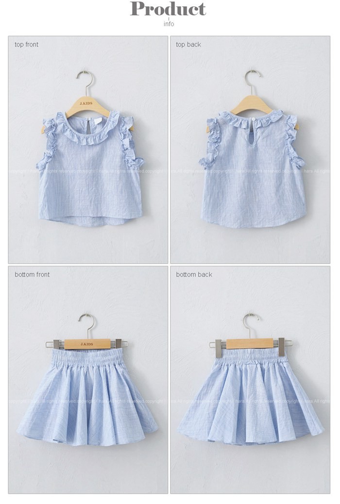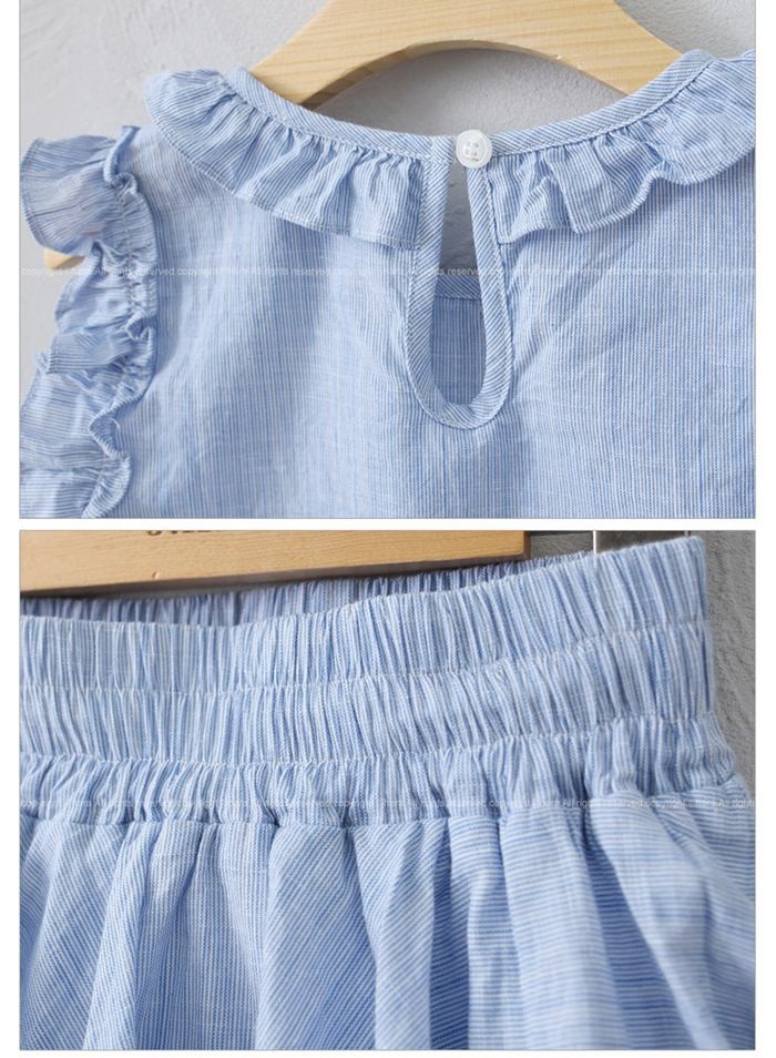 【製品仕様】■商品説明・素肌に優しいコットン素材使い!~・お姫様みたいに可愛い~・上下セットでおしゃれに着こなす~♪・お出かけにぴったり!■サイズ/寸法平置採寸トップス【100】バスト:32cm 総丈:30cm【110】バスト:34cm 総丈:33cm【120】バスト:35cm 総丈:36cm【130】バスト:37cm 総丈:39cm【140】バスト:38cm 総丈:42cm【150】バスト:40cm 総丈:45cm ボトムス【100】ウェスト:21cm 総丈:26cm【110】ウェスト:22cm 総丈:28cm【120】ウェスト:23cm 総丈:31cm【130】ウェスト:24cm 総丈:34cm【140】ウェスト:25cm 総丈:36cm【150】ウェスト:26cm 総丈:39cm■素材/材質トップス:コットン ボトムス:コットン■色ブルー