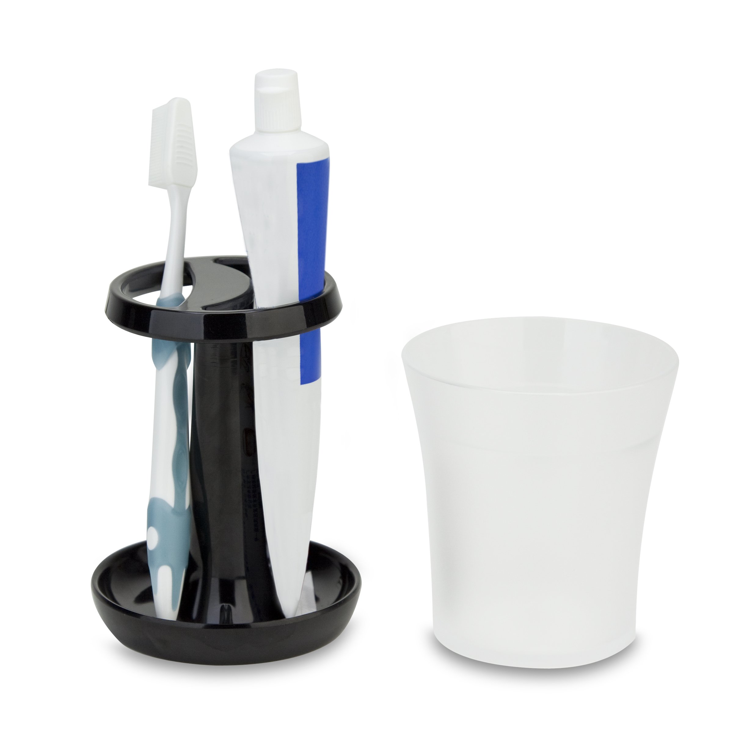 ● Compact design that can accommodate semi-transparent tumbler over toothbrush stand