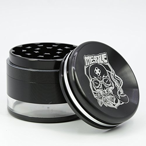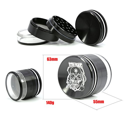 4-Piece 2"1/2 Aluminum Transparent Bottom Cover Concave Top Sprice Herb Grinder 8811-63 (Black)