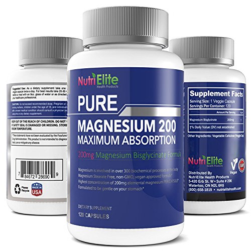 Experience the benefits of NutriElite Magnesium Glycinate - As Bisglycinate - Magnesio 400mg Suggested Daily - 200mg Of Chelate Supplement In Each Capsule - Formulated For Maximum Absorption - Vegan, Non-GMO And No Stearates - 120 Capsules